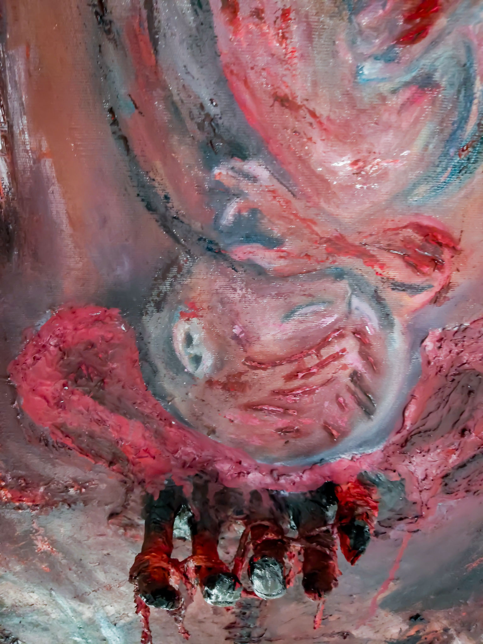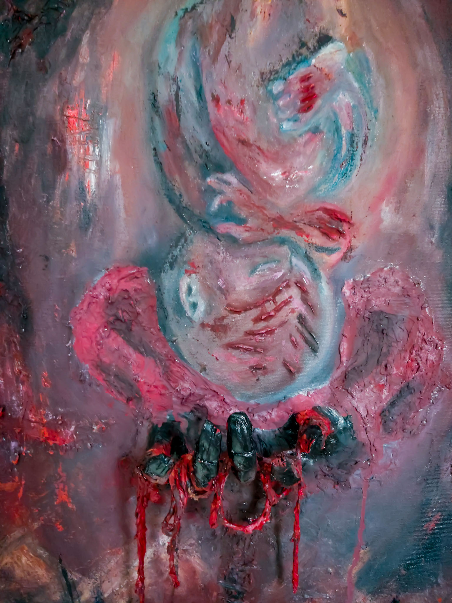 Oléo sobre tela. Cerâmica fria e barbante.